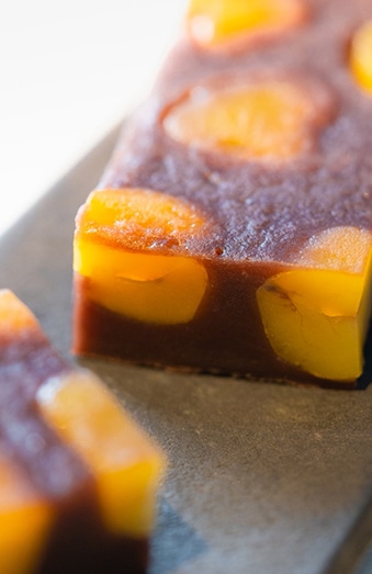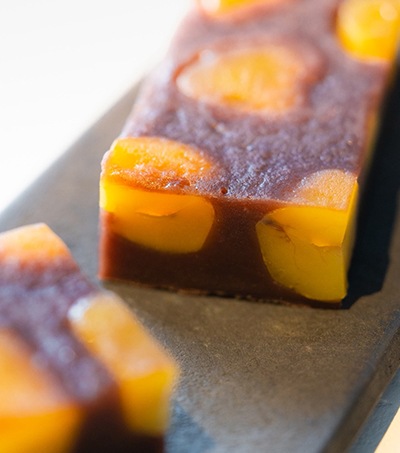 もちっとあっさりがたまらない栗蒸羊羹。人気の理由は、やわらかい栗と小豆の風味の一体感...。